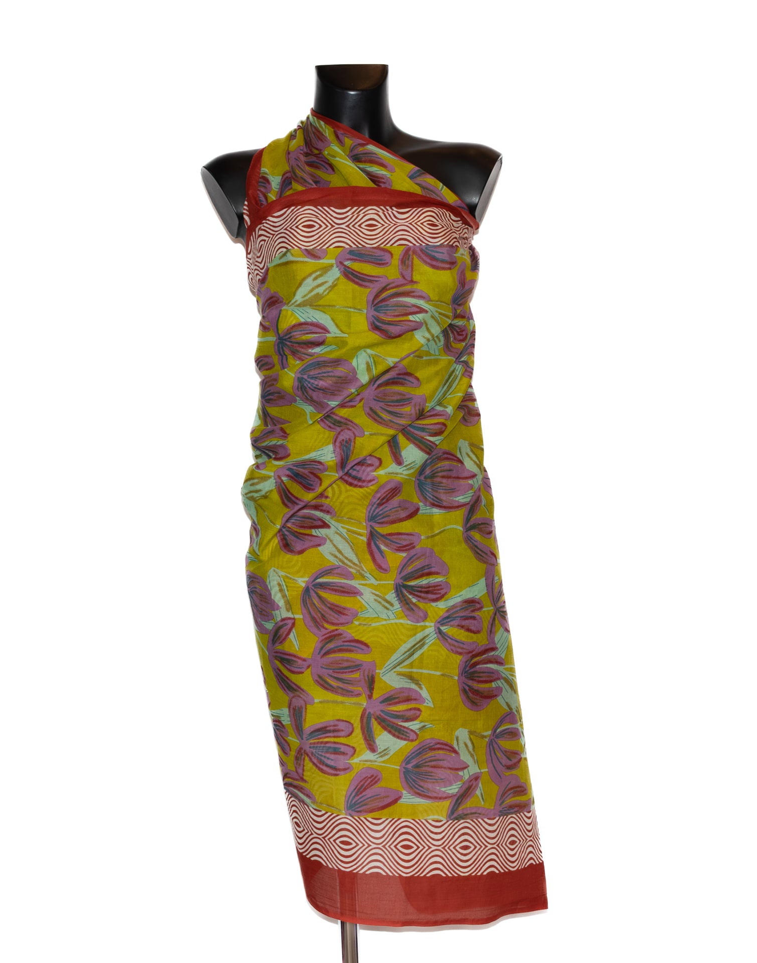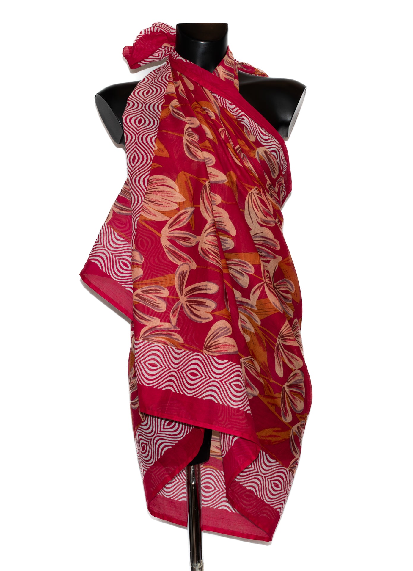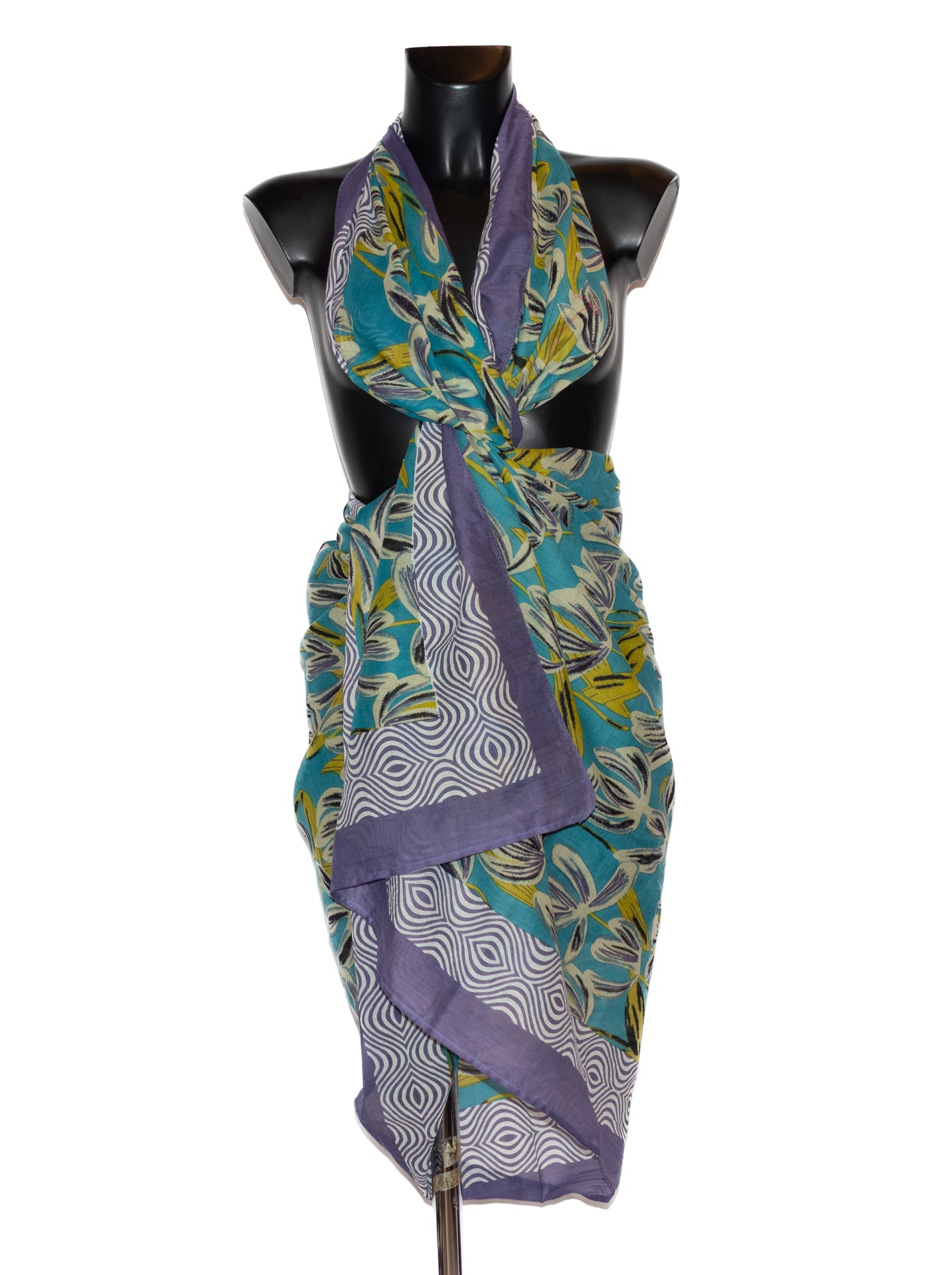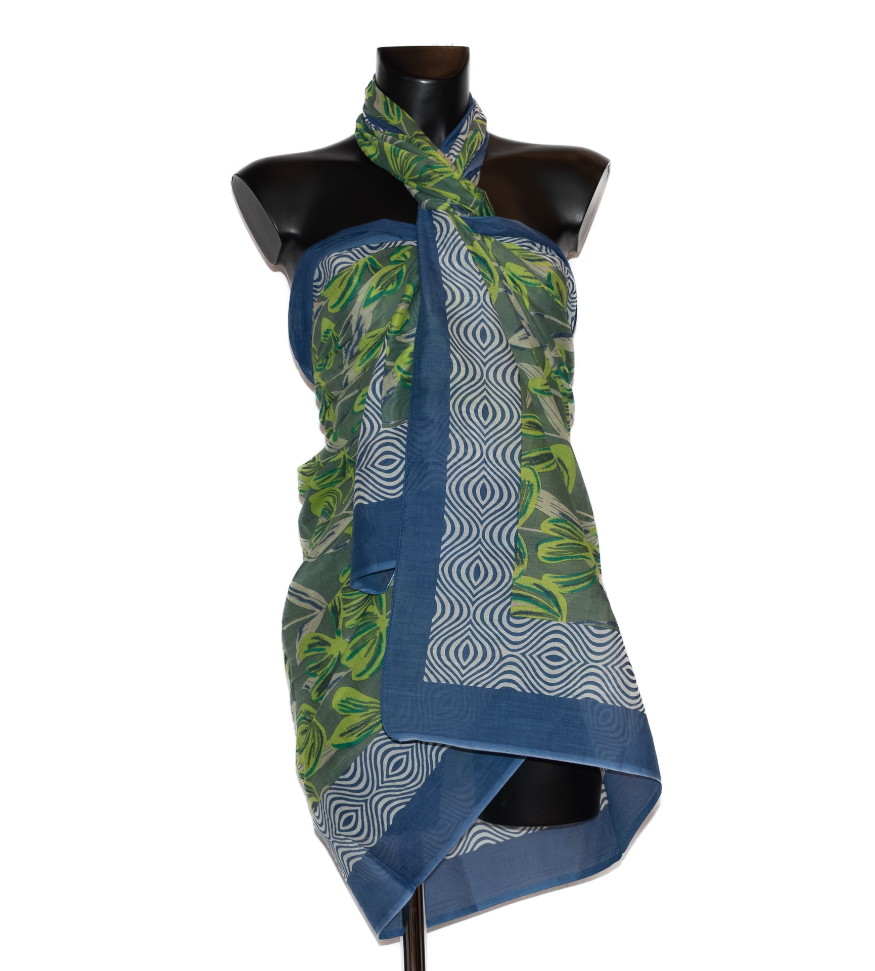 Pareo realizzato in cotone biologico, ideale anche da utilizzare come foulard. con stampe floreali in diverse varianti di colore, lunghezza 150 cm e altezza 70 cm, ideali per una giornata al mare